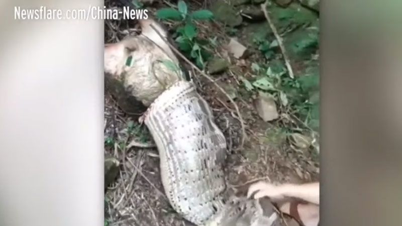 Un campesino chino estaba buscando a una cabra desaparecida cuando encontró una enorme pitón hinchada en Quanzhou, provincia sudoriental de Fujian, informa The Daily Mirror.