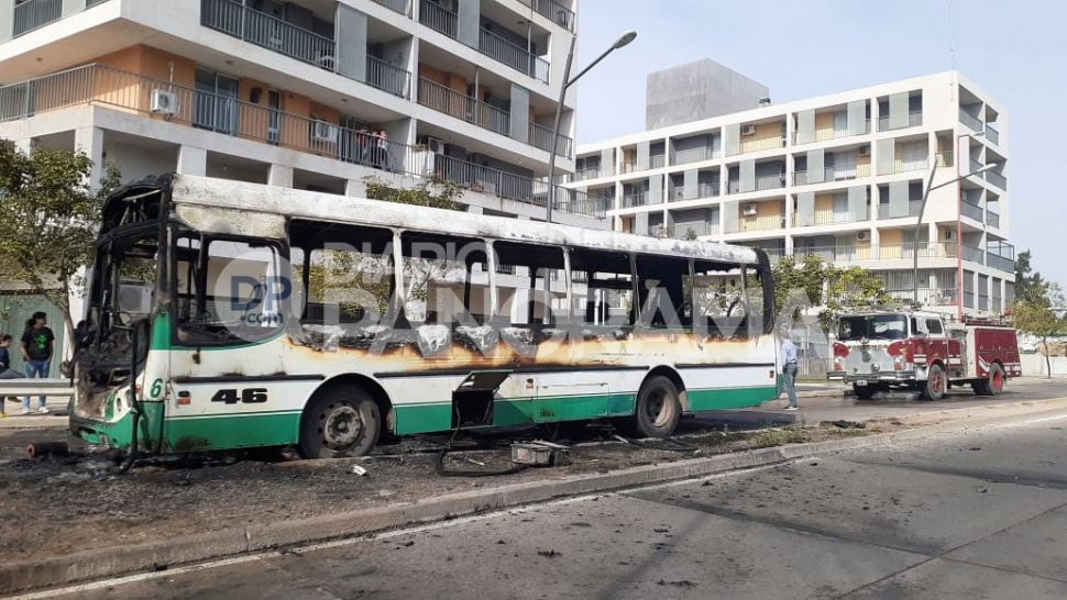 Un colectivo fue consumido totalmente por el fuego cuando circulaba por avenida Belgrano norte en Santiago del Estero.