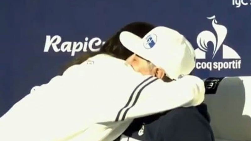 El primer día de Diego Maradona en Gimnasia de La Plata estuvo repleto de emociones, una de las más fuertes el abrazo del DT con Giselle Fernández, hermana de Cristina Fernández de Kirchner, candidata a vicepresidenta de la Nación, luego de la conferencia de prensa.
