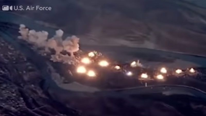La acción fue captada en video desde las aeronaves de EE.UU. y desde tierra por las fuerzas iraquíes. En las imágenes se puede ver que prácticamente toda la isla fue bombardeada de punta a punta, con espesas columnas de humo elevándose desde los múltiples puntos de impacto.