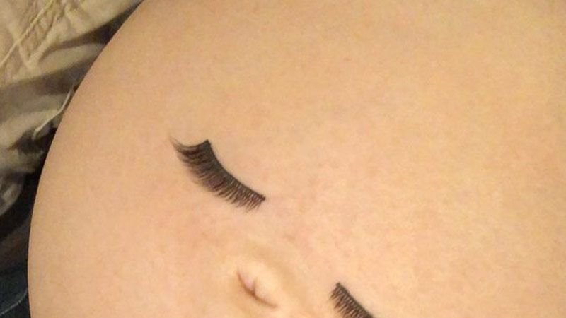 "Puse pestañas en mi vientre y luego me reí por tres minutos seguidos. Mi vientre dijo UwU", escribió la mujer.