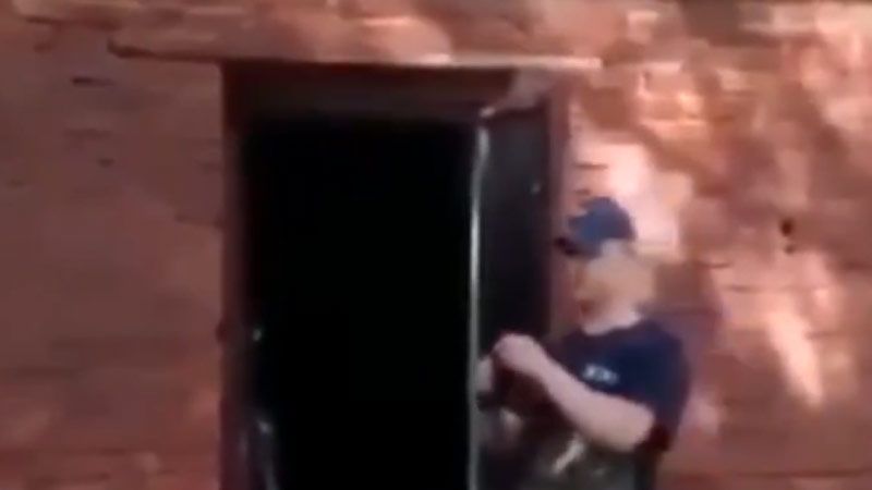 En las imágenes, se ve cómo el hombre lanza la munición dentro de un edificio de ladrillo y cierra una puerta. Acto seguido, se produce una potente explosión que hace que la puerta se abra bruscamente y golpee al instructor con tanta fuerza que cae al suelo.