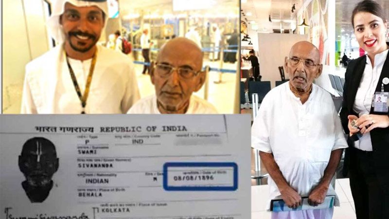 Oficiales de inmigración en Emiratos Árabes Unidos quedaron sorprendidos por la edad de Swami Sivananda, que sería el hombre más longevo en la historia de ser correcta su fecha de nacimiento.