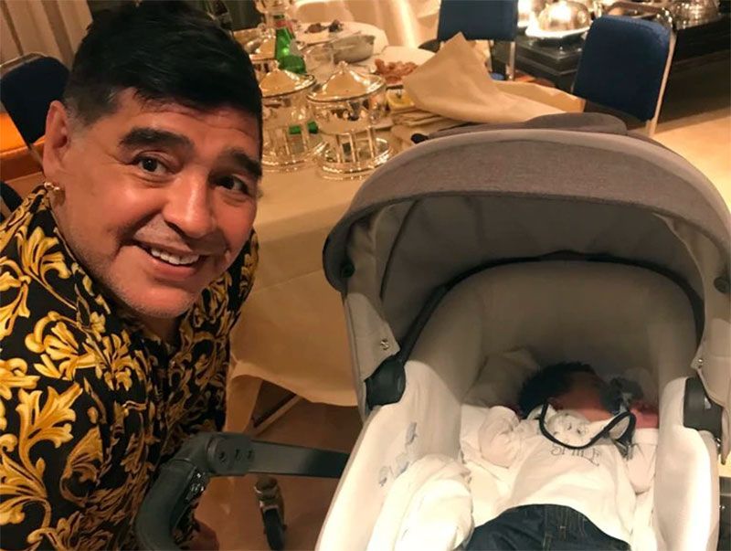 La pequeña es la cuarta nieta de Diego Maradona. El primero fue Benjamín Agüero, el hijo que Gianinna Maradona tuvo con el jugador Sergio Kun Agüero el 19 de febrero de 2009. Luego, el 12 de marzo de 2019 llegó su segunda nieta: Roma, la primera hija de Dalma Maradona y Andrés Caldarelli.