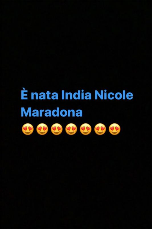 En su cuenta oficial de Instagram, el hijo de Cristiana Sinagra y Diego Armando Maradona publicó varias historias para expresar su enorme felicidad por la llegada de su segunda hija. “Nació India Nicole Maradona”, escribió Junior en la red social. También compartió un video en el que muestra imágenes de Italia con la leyenda “bienvenida India Nicole”. En Twitter, la periodista Pía Show publicó una foto del italiano con la pequeña.