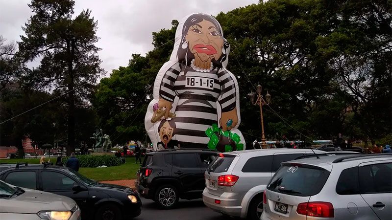 Como suele suceder, además de las definiciones, y algunos cruces esperados, hay algunas "perlitas". Desde la tarde, distintas manifestaciones políticas, algunas espontáneas y otras preparadas, se ubicaron frente al edificio de la Facultad de Derecho. En uno de ellas, se exhibió un enorme dispositivo inflable que mostraba un dibujo de Cristina Kirchner vestida con un traje a rayas junto a Alberto Fernández, ambos rodeados de dólares.