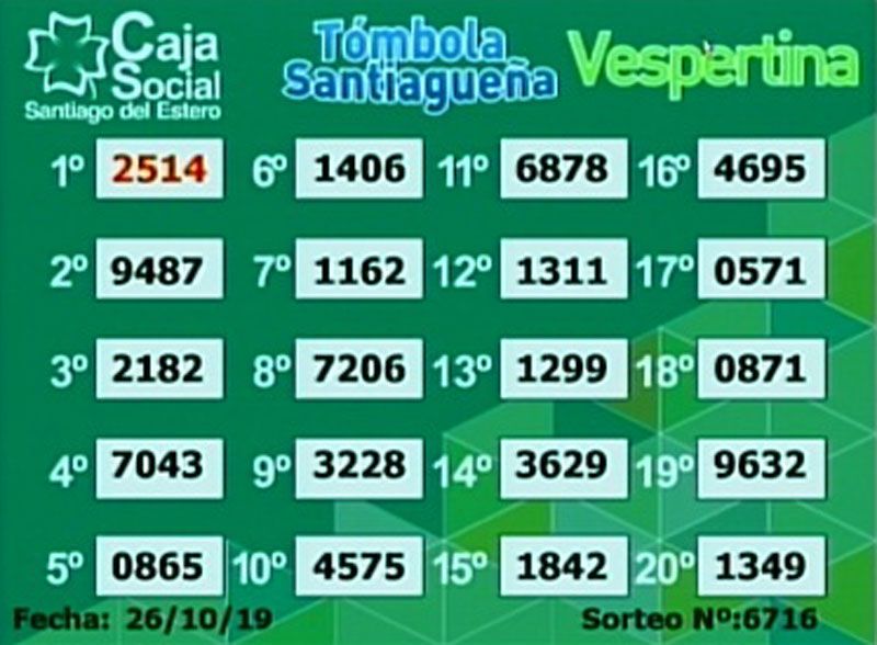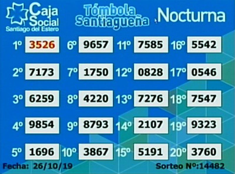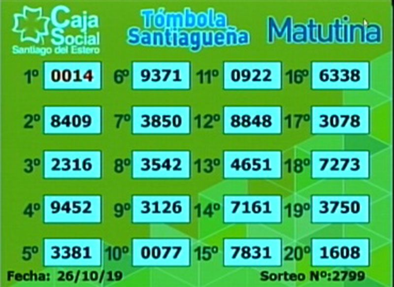 En la edición Matutina de la Tómbola Santiagueña de este sábado 26 de octubre ha salido en el primer lugar el número 0014.