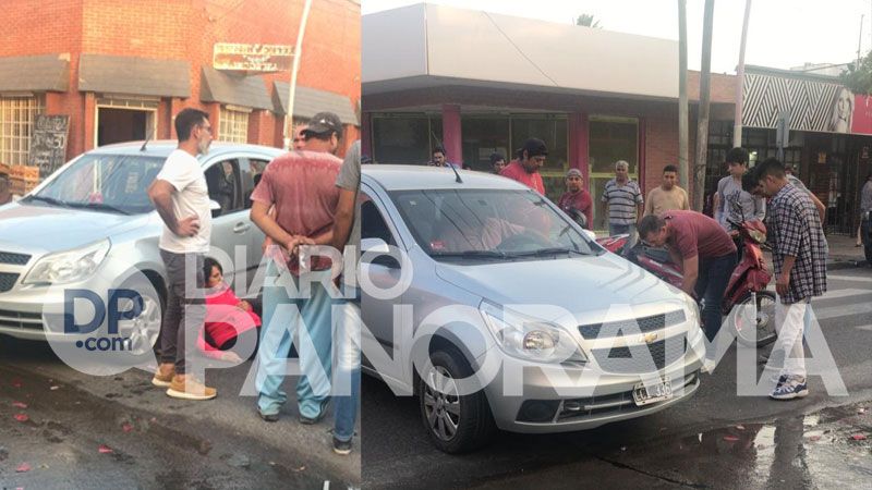 Una motociclista sufrió heridas al colisionar con un auto, hecho ocurrido en la esquina de Garibaldi y San Martín. La mujer fue asistida y trasladada al hospital por el SEASE.
