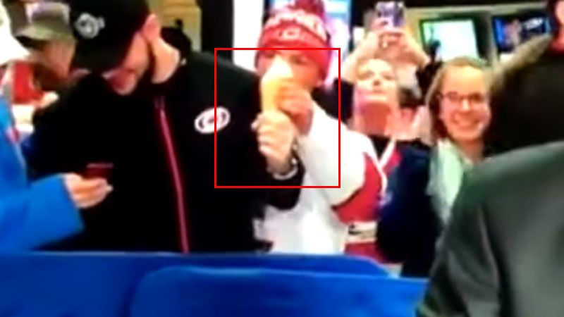 Un joven robó el helado que estaba sosteniendo otro hombre sin pensar que estaba siendo filmado por cámaras de televisión. El hecho fue parte de la transmisión en vivo de Fox Sports, que este lunes cubría el partido de hockey entre los Huracanes de Carolina y los Senadores de Ottawa en EE.UU.