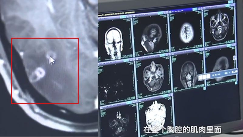 El médico encontró que más de 700 tenias, que el paciente albergó en su cerebro, pecho y pulmones, ya habían causado daños a sus órganos. "Hay múltiples presencias de lesiones que ocupan espacio en el cerebro del paciente. También están en los pulmones y llenan los músculos dentro de la cavidad torácica", señaló Wang.