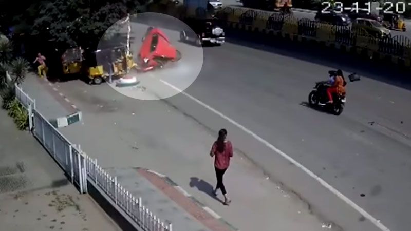 Este de 23 de noviembre, un vehículo fuera de control, que iba circulando por un puente, cayó varios metros en una calle transitada en la ciudad india de Hyderabad, matando a una transeúnte e hiriendo a 6 personas más, señala India Today.