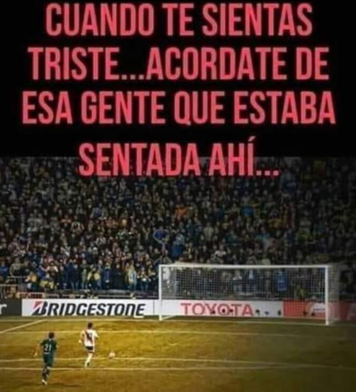 Tu cara cuando perdes una final Pero recordas que jugaste 14, Ganaste 10, eliminaste 5 veces a Boca, le ganaste 2 Finales en un año incluyendo una LIBERTADORES, y te queda una final en el año... pic.twitter.com/p9MJZmHiyw