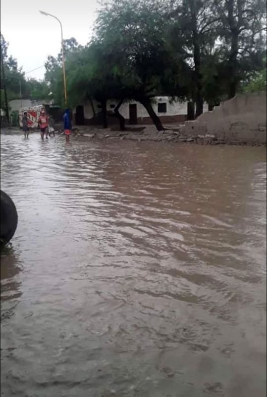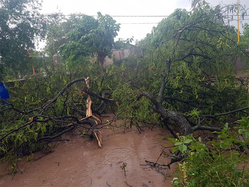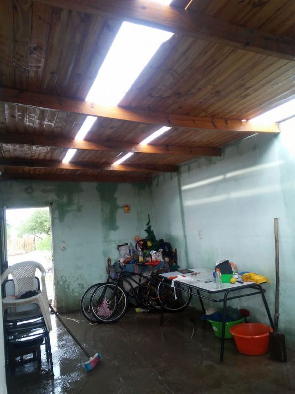 El paso del temporal, que incluyó granizo y ráfagas muy fuertes, provocó allí serios destrozos. Además de las calles inundadas, lo preocupante son los daños sufridos: voladura de techos y caída de postes y árboles.