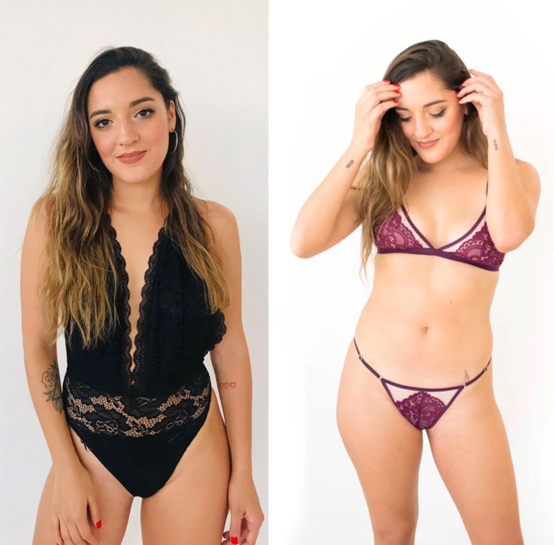 Para las fotos, que forman parte de la campaña de una marca, posó con varios conjuntos de encaje y bodies. Divertida, escribió en sus redes sociales: "Curvas a punto".