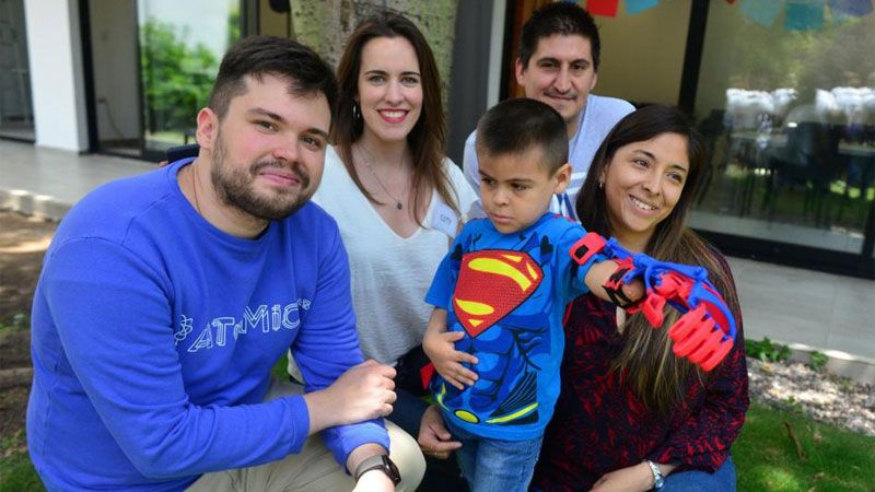Apenas abrió sus ojos, Felipe pidió su capa de Superman. El niño de 4 años quiso estar a la altura de las circunstancias. Sabía que ese día conocería a Gino Tubaro, el joven inventor cuya historia había conocido en cuentos. También estaba al tanto de que recibiría una prótesis 3D, una especie de mano mágica que le daría superpoderes.