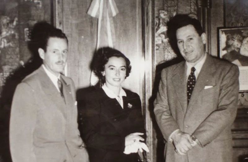 Con leve sonrisa manifiestan complacencia de la firme presencia del convoy”, agrega el biógrafo. Nace así un romance entre ambos, que se casarían en 1943.