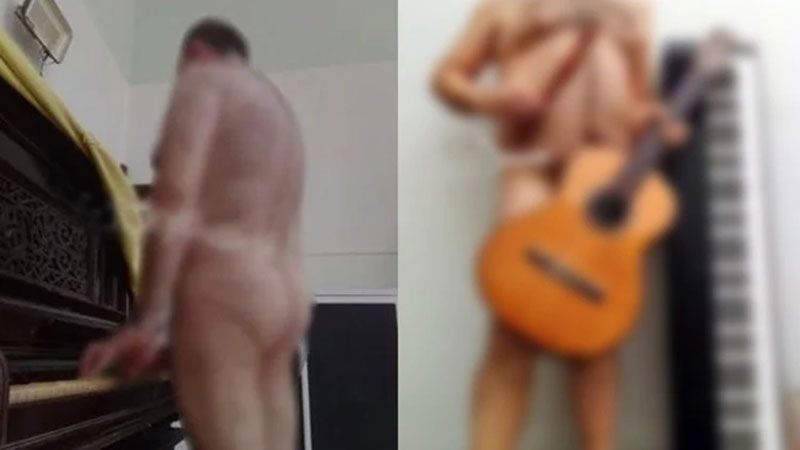 En la foto que se viralizó el maestro aparece solo, completamente desnudo, sentado junto al piano en la sala de música del colegio y no se observa la presencia de alumnos.