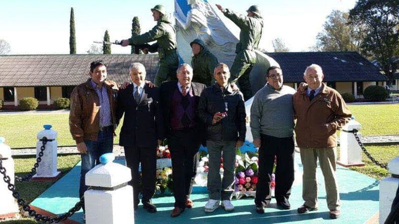 Sabían que la segunda semana de junio en Monte Caseros, se reunían los veteranos de guerra del Regimiento 4. Y en el 2012 se aparecieron con una bandera con la leyenda “La sección olvidada”.