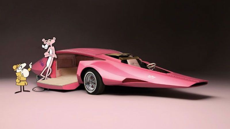 El auto de la serie animada La Pantera Rosa se ubica, sin dudas, en el podio de los vehículos más surrealistas construidos para una ficción. Nacido de la imaginación de diseñador Jay Ohrberg, se convirtió en uno de los puntos de atracción del comienzo de cada show del felino rosado, quien hace 50 años tuvo su primera aparición en un cortometraje.