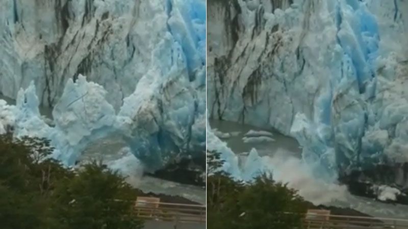 En marzo de 2018, en la última ruptura que se produjo de noche y sin testigos, cayó el techo del túnel formado por la presión del brazo sur del lago Argentino y ese fenómeno comenzó a repetirse el 20 de noviembre pasado hasta el desmoronamiento de este sábado, que libera el canal de los témpanos y lleva hielo y rocas hacia el mencionado lago y luego al río Santa Cruz.