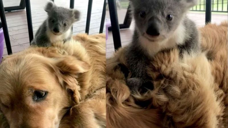 "Era bastante temprano y mi marido me gritó que viniera a ver algo", relató la mujer, quien además aseguró que su mascota estaba dándole calor al koala que no paraba de temblar.
