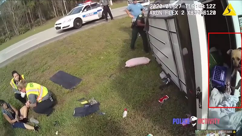 Mientras la conductora, identificada como Sarah Yurman, era atendida pidió que buscaran a su perro y tras algunos instantes de búsqueda dentro del revuelto interior del rodado se lo pudo encontrar sano y salvo, tras lo cual fue entregado al Control de Animales de Daytona Beach.