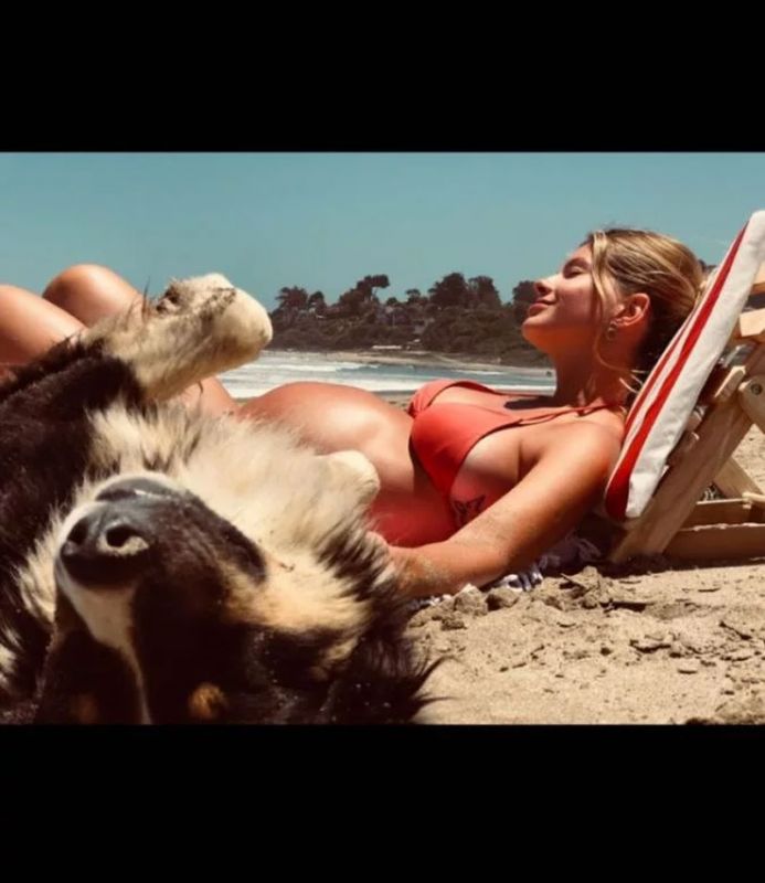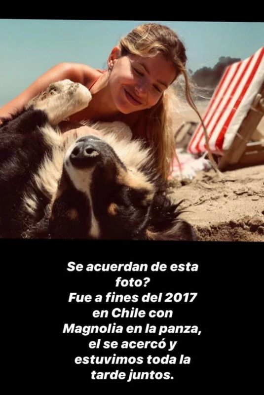 “¿Se acuerdan de esta foto? Fue a fines de 2017 en Chile, con Magnolia en la panza, él se acercó y estuvimos toda la tarde juntos”, escribió junto a la primera imagen, acostada tomando sol en bikini, con el perro que se dejaba acariciar.