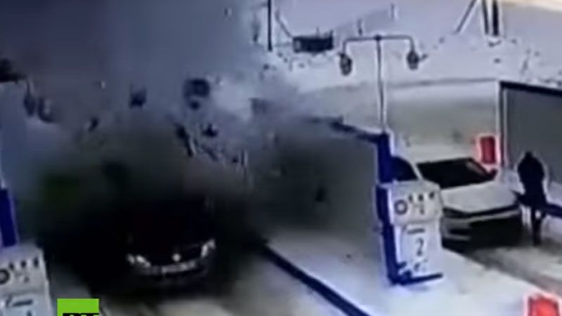 Un vehículo estacionado al lado de un surtidor de GNC, explotó destrozando completamente al rodado. Ocurrió en una ciudad rusa.