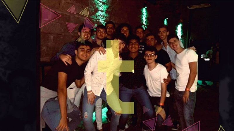 La imagen del joven junto a sus amigos, es del sábado 18 en Le Brique.
