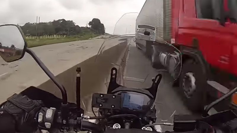 Un intento de asalto obligó a un motociclista que circulaba por una autopista del estado de Sao Paulo (Brasil) a tomar la decisión de dar media vuelta y conducir a toda velocidad en sentido contrario al tráfico vehicular para despistar a los malhechores, informan medios locales.