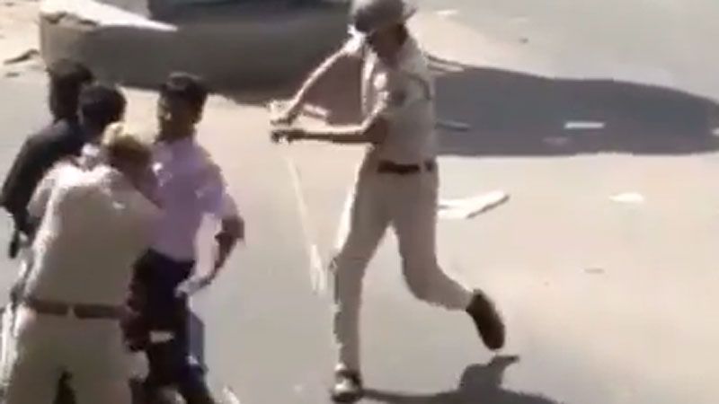 En las imágenes se observa una leyenda que afirma que se trata de Seguridad Vial y tras ello muestra a unos policías que comienzan a golpear con cañas a los acompañantes y conductores de las motos que viajan con tres personas a bordo.