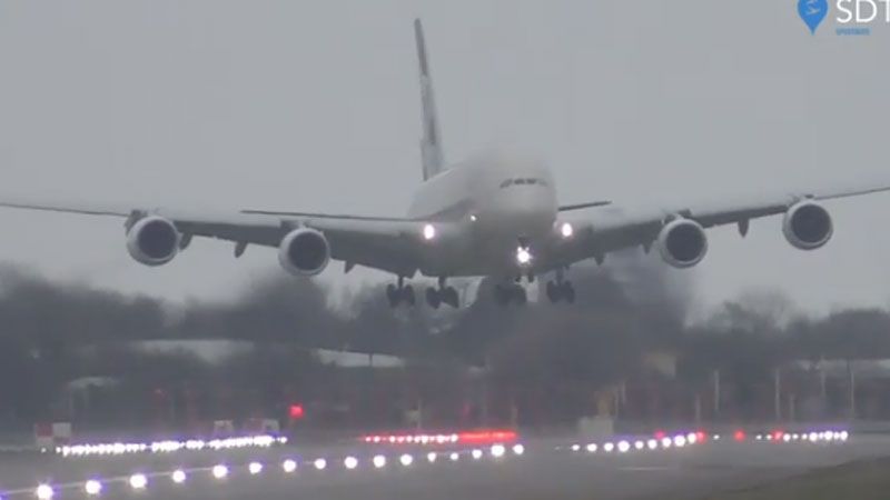 Un avión de pasajeros de Etihad Airways logró realizar un impresionante aterrizaje en el aeropuerto Heathrow de Londres en medio del poderoso viento cruzado provocado por la tormenta Dennis, que azota las islas británicas este fin de semana.