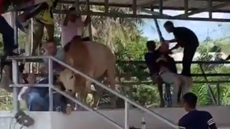 En un video que capturó el momento del incidente, es posible observar como el animal —que ha atravesado la valla que lo separaba del público— embiste a la víctima estrellándola contra un barandal mientras los demás espectadores huyen de las gradas para ponerse a salvo.