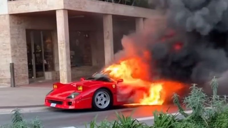 Un Ferrari F40, clásico automóvil del fabricante italiano, producido entre finales de los años ochenta y principios de los noventa del siglo pasado, fue devorado por las llamas en una calle de Montecarlo (Mónaco), según se aprecia en un video compartido este miércoles en Instagram.