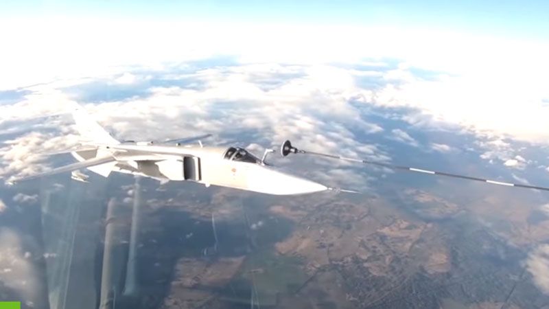 En un video publicado este miércoles por el Ministerio de Defensa ruso se aprecia cómo cazas multifuncionales Su-30SM y bombarderos tácticos Su-24M ponen a prueba sus habilidades de maniobrabilidad posicionándose detrás de un avión cisterna Iliushin Il-78 que llegó desde el centro del país especialmente para estos ejercicios.