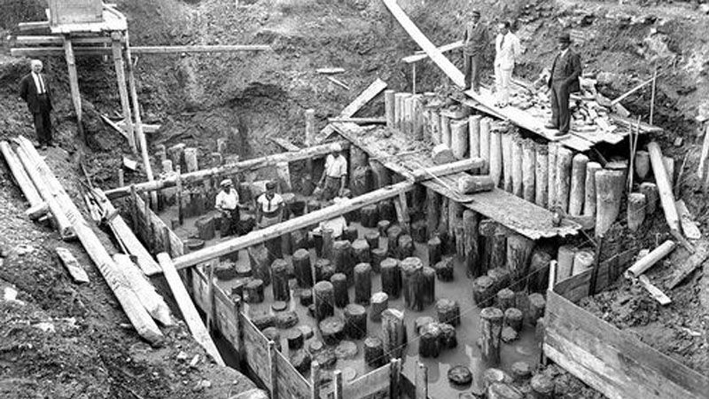 Esa punta ayudaba a enterrarlos, a punta de golpes, uno al lado del otro, lo suficientemente profundo para que penetraran la capa de arena y fango suelto hasta llegar a donde la greda estaba comprimida y así evitar que la edificación se hundiera y colapsara.