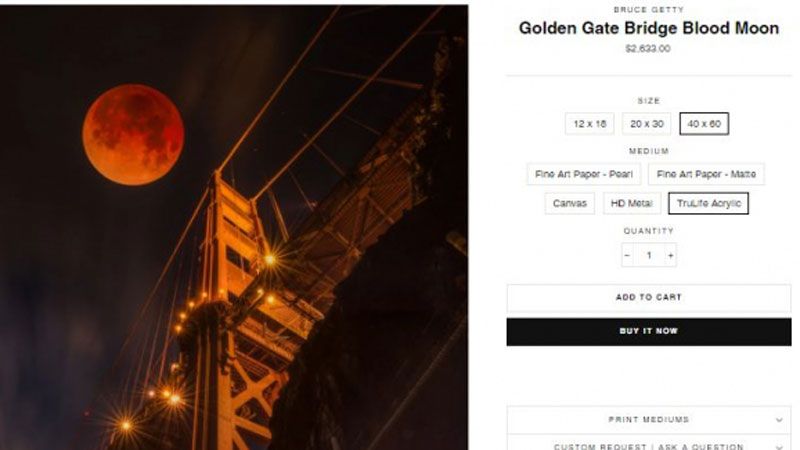 Getty ha explicado a los medios locales que hizo la foto en 2016 y se fue a casa, donde la retocó con la herramienta de edición Photoshop para añadirle la luna de sangre de 2014. Una vez retocada la imagen, el fotógrafo la colgó en su página web, donde los funcionarios del Golden Gate se percataron de la imagen y le enviaron una carta advirtiéndole de su infracción.