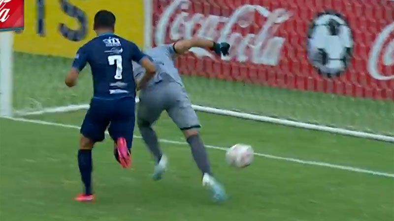 El guardameta intentó salir jugando pero ante la presión de un rival terminó tropezando y enviando el balón al fondo de su propio arco.