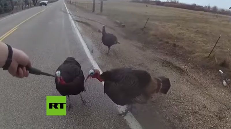 Un video, publicado en la cuenta de Facebook de la Oficina del comisario del condado de Ada (Idaho, EE.UU.) este miércoles, muestra la 'batalla' del ayudante del sheriff, Bryce Bienz, contra tres pavos.