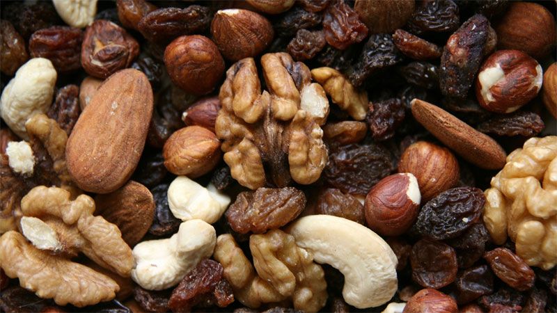 1. Frutas secas como almendras, maníes, nueces; aportan omega 3, proteínas, zinc y calcio, entre otros.