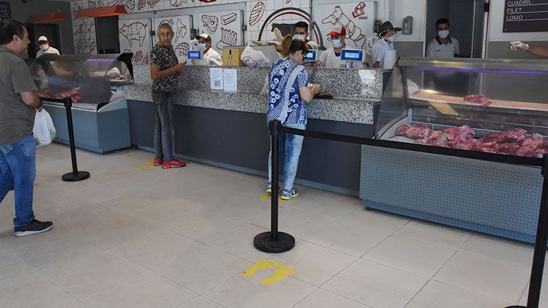 “Solamente permitimos la permanencia de hasta 7 clientes en el salón. El resto de los clientes espera afuera haciendo cola con personal de la carnicería controlando de que permanezcan a una distancia de 2 metros, tal como indican las medidas de seguridad”, informó el encargado de local.