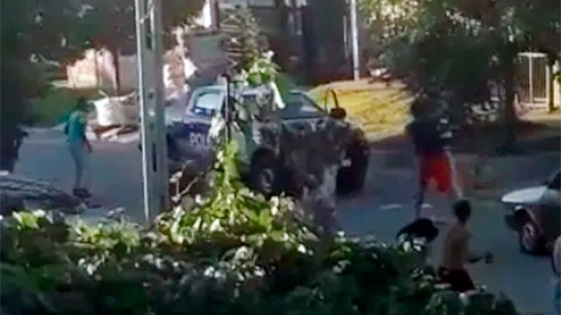 A raíz del ataque, un oficial sufrió una herida superficial leve en la pierna derecha a la altura de la tibia, mientras que el patrullero fue dañado por los piedrazos, informaron fuentes policiales.