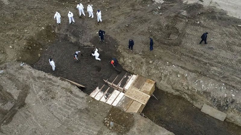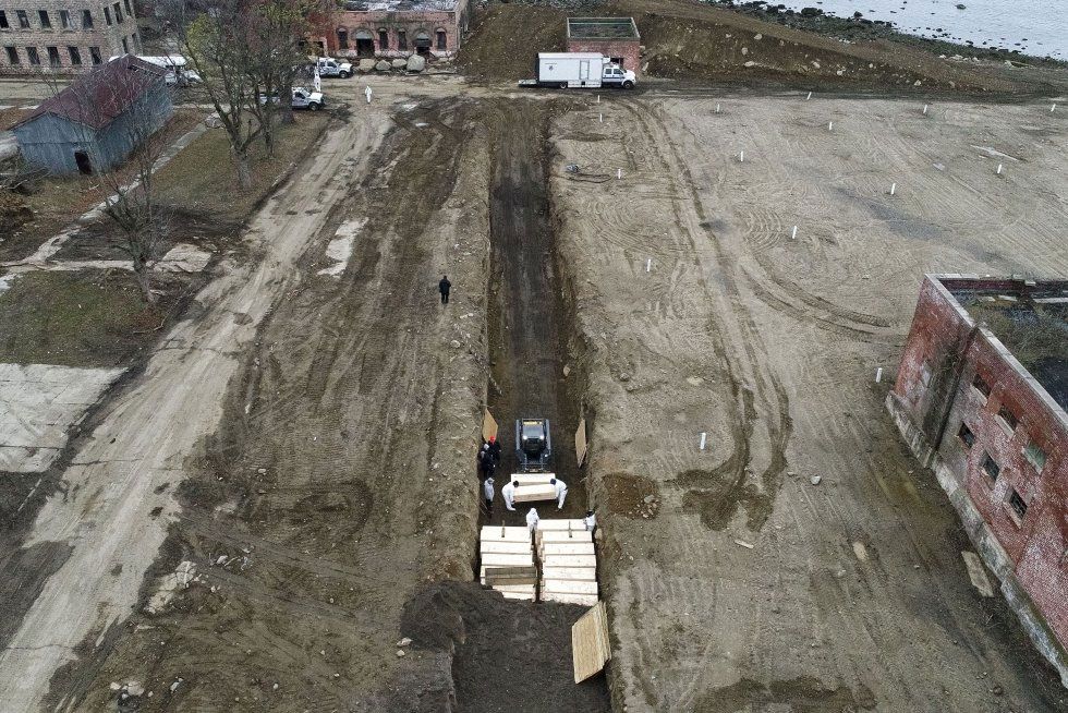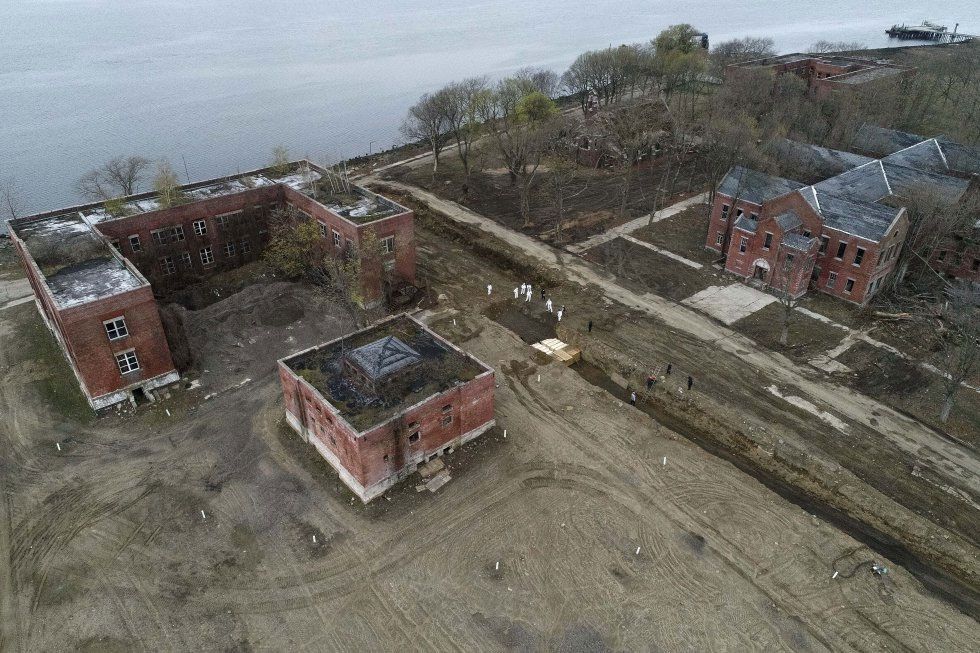 Las imágenes aéreas tomadas por varias agencias de noticias muestran a trabajadores cavando tumbas en la isla, una franja de tierra de acceso restringido a una milla del Bronx que es el lugar de descanso final para más de un millón de neoyorquinos, en su mayoría indigentes.