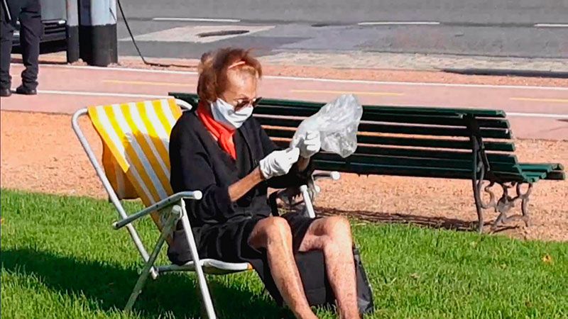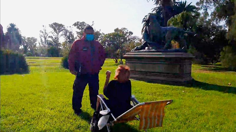 Una señora que salió a tomar sol en una plaza de Palermo se resistió al pedido de la Policía de regresar a su casa en medio del aislamiento obligatorio por la expansión del coronavirus en la Argentina. "Colaboren conmigo, que soy una vieja que necesita aire y sol. No estoy contagiando a nadie", le dijo al oficial que le notificó que estaba incumpliendo la cuarentena.