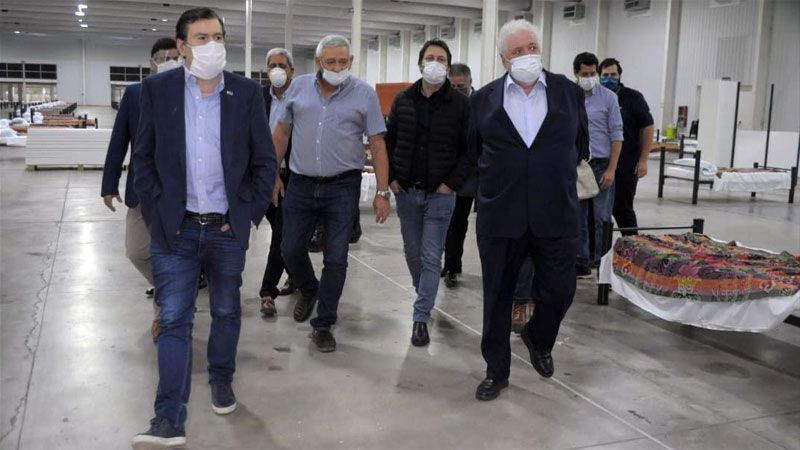 El gobernador Gerardo Zamora acompañó al ministro de Salud Ginés González García y al ministro del Interior Wado de Pedro al NODO donde se montó un centro de aislamiento de enfermos no complejos, con una capacidad de 400 camas, estaciones de enfermería y una enfermería central para tratamientos complejos.