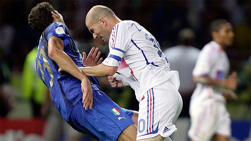 Durante aquella final del 9 de julio de 2006, en el estadio Olímpico de Berlín, sorprendió a los miles de presentes como a los millones de televidentes aquella intempestiva reacción de una de las máximas figuras del seleccionado francés -hoy técnico del Real Madrid-, cuando la pelota estaba lejos de la posición de ambos.