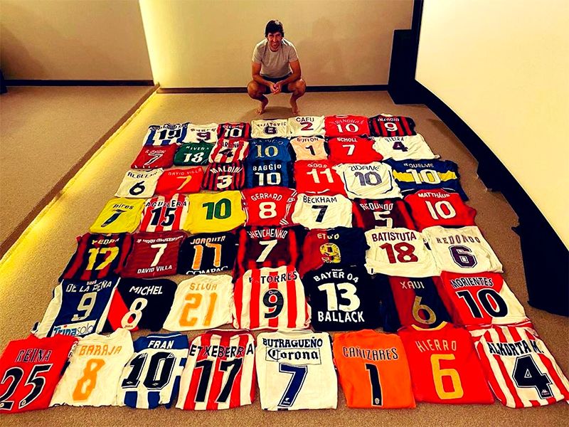 El consagrado ex delantero español exhibió las casacas en sus redes sociales.