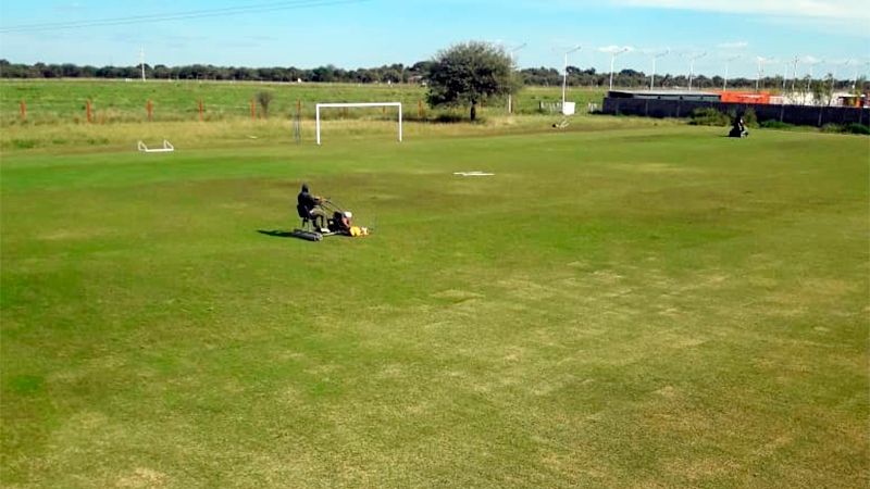 El césped del estadio Alfredo Terrera del Ferroviario está con un verde a pleno gracias al trabajo del personal de mantenimiento de la institución, para salir a jugar en cualquier momento.