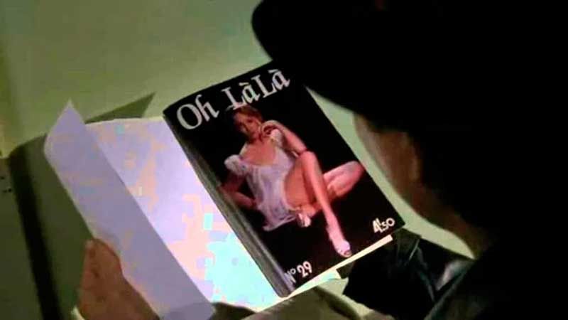 Para ser más específicos, se trata del momento en que Marty McFly (Michael J. Fox) mira la portada de la revista Oh La La, una publicación para adultos francesa. Allí el muchacho del futuro -que había vuelto al pasado para "salvar" el futuro de sus hijos y en esa aventura termina enredado en complejas cuestiones temporales- busca un almanaque de apuestas deportivas, pero se topa con otra publicación "disfrazada".