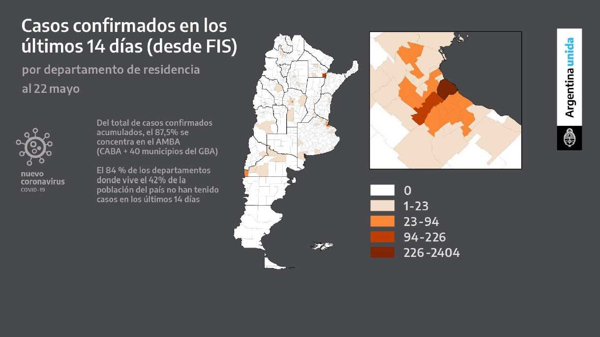 Insistió en la concentración de los casos en la región metropolitana. "La última vez que hablamos el virus se duplicaba cada 25 días y ahora, si no contamos al AMBA, es cada 33, porque la densidad poblacional cambia todo", insistió.